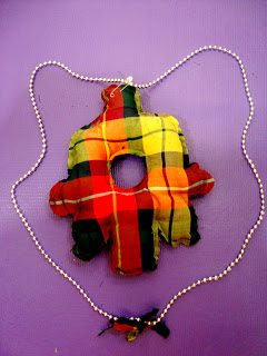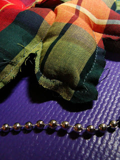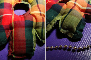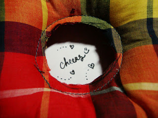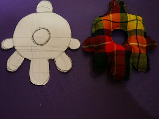 [Cropped shaped fabric filled with dacron, sew the edge and give a little of creative effortless touch (ehem, refering to pin and remaining fabric)]