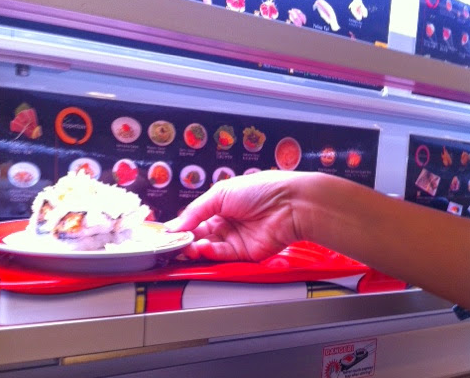 - A train comes, your food on it! Take it and press the botton provided to prevent ‘traffic jam’