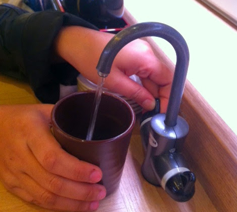 - Pour in green tea powder and fill in yourself with hot water in your table. Self service!